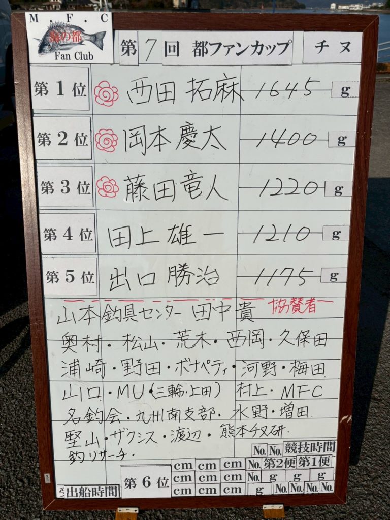 山本釣り具センター、田中貴、ZAXIS、、釣りサーチ、ボナペティ、MFC、熊本ちぬ釣研究会、名釣会九州南支部、MU(三輪義幸、上田洋平)荒木竜也、梅田昌宏、浦崎嘉晴、大中健嗣、奥村真一、河野繁雄、久保田和大、竪山浩次、中山義弘、西岡真一郎、野田澄雄、増田実、松山昌史、水野博文、村上公一、渡辺隆浩