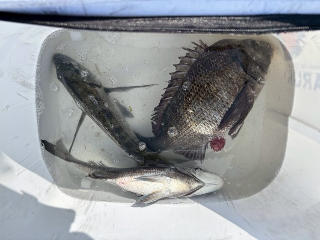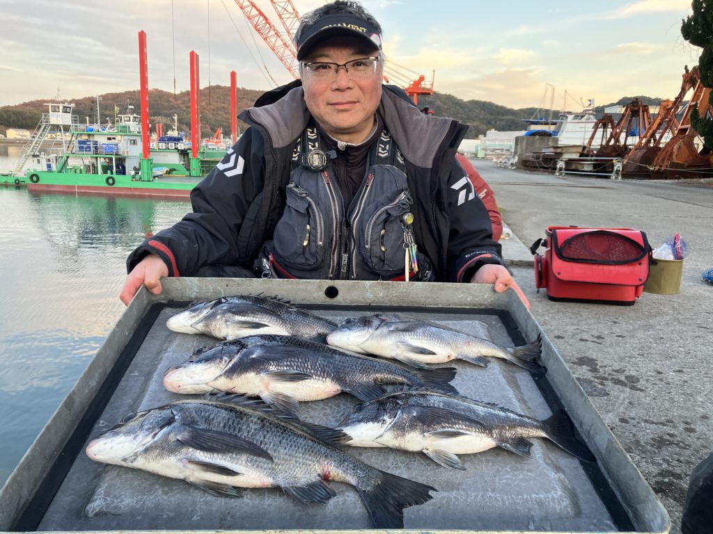 磯釣りで松田さん チヌ44㎝を頭に5匹